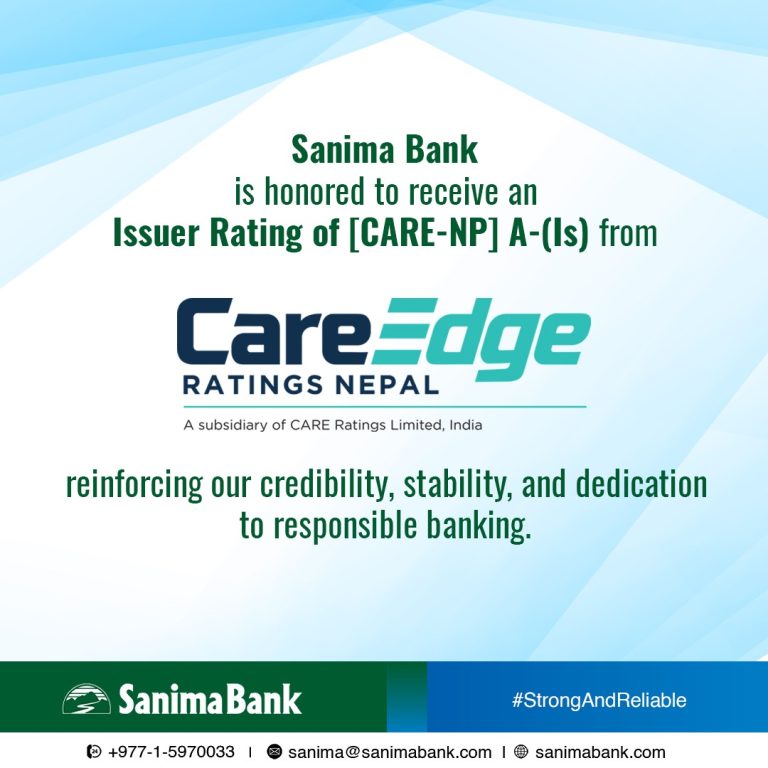 काठमाडाैं । सानिमा बैंक लिमिटेडले [CARE-NP] A- (Is) रेटिङ प्राप्त गरेको छ । Care Edge Ratings Nepal ले बैंकलाई उक्त ...