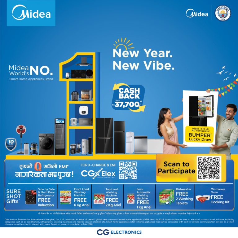 काठमाडौं । इलेक्ट्रोनिक्स ब्रान्ड सीजीले नयाँ वर्ष २०८३ को ‘एक्सपिरेन्स लाइफ विथ सीजी’ योजना ल्याएको छ । आधुनिक प्रविधि र ...