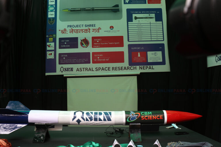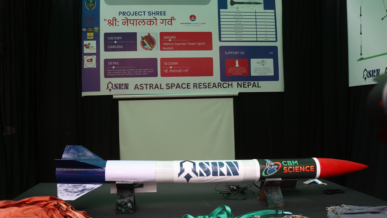 ‘एसट्रल इस्पेस रिसर्च’ नेपाल नामक अन्तरिक्ष सम्बन्धि अनुुसन्धान गर्ने एक संस्थामा आवद्ध युवाको समूहले बनाएको रकेट आज डिल्लीबजारस्थित सिबिएम कलेजमा प्रर्दशनिमा राखिएको छ ।