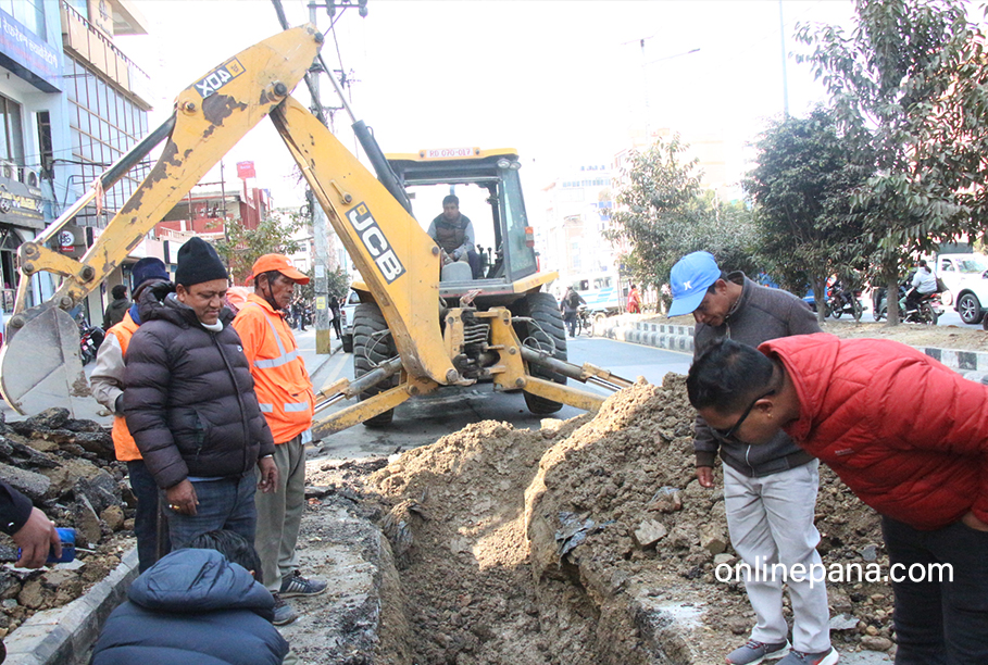नयाँबानेश्वर चोक नजिक सडकमा ढल पाइपबीच अन्तर (ग्याप) हुँदा सडक भासिएको पाइएको छ । शुक्रबार बिहान गुडिरहेको बस एक्कासि सडकमा भासिएपछि महानगरपालिका टोलीले डोजर प्रयोग गरेर सडक खनेको थियो ।