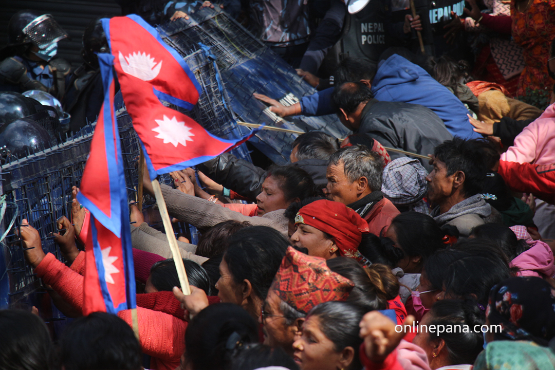 बालुवाटारमा प्रदर्शन गर्न पुगेका लघुवित्त पीडितहरूले राष्ट्र बैंकअगाडिको निषेधित क्षेत्र तोडेर अगाडि बढ्न खोजेपछि प्रहरीले रोकेको थियो । निषेधित क्षेत्र तोड्ने केही व्यक्तिलाई प्रहरीले नियन्त्रणमा लिएको छ ।