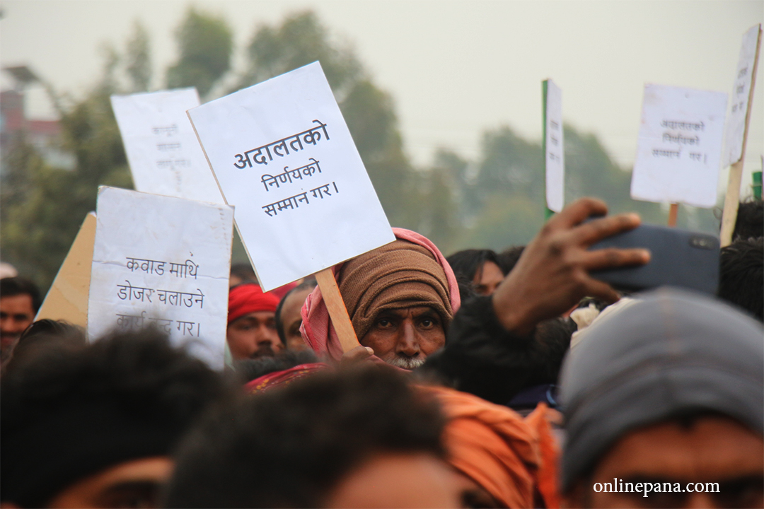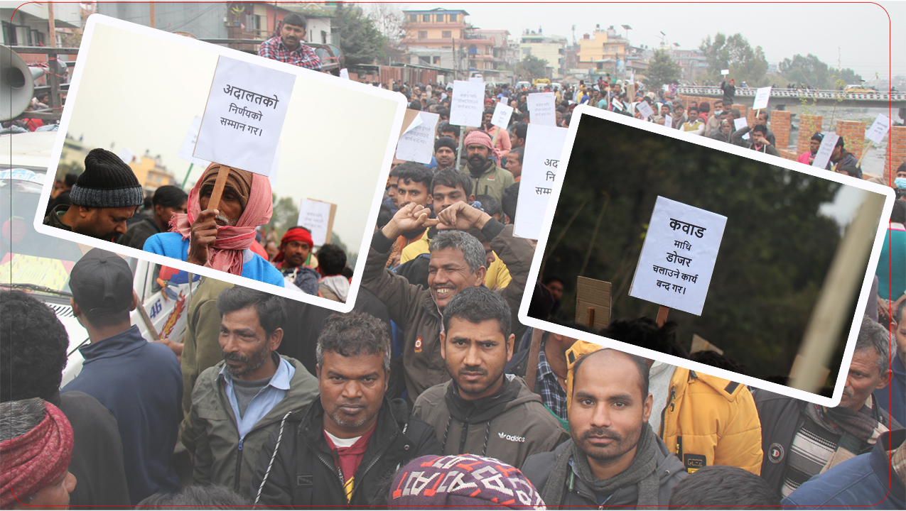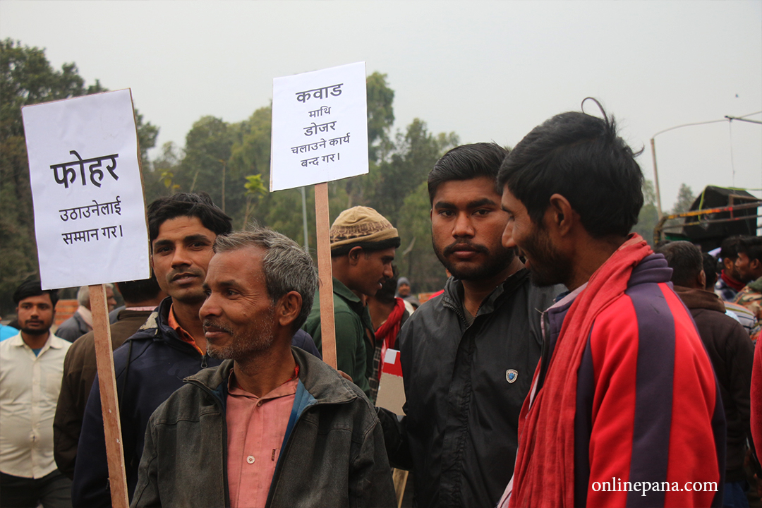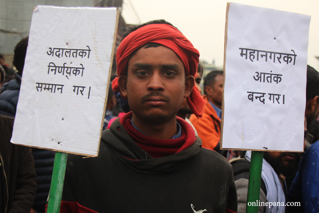 उनीहरूले अनाधिकृत ढंगले कवाड हटाउने कार्य बन्द गर, अदालतको निर्णयको सम्मान गर, कानुनी शासन लागू गर, हाम्रो व्यवसायमाथिको हस्तक्षेप बन्द गरलगायत प्लेकार्ड बोकेर प्रदर्शन गरेका छन्।