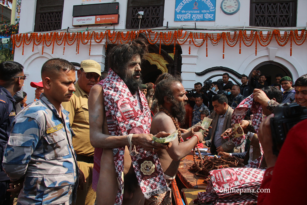 आज पशुपतिनाथ परिसरबाट ६ हजारभन्दा बढी साधुसन्तको एक साथ बिदाइ गरिएको हो । पशुपति क्षेत्र विकास कोषका अनुसार महाशिवरात्रीका लागि पशुपतिनाथ दर्शन गर्न आएका साधुसन्तलाई वरिष्ठताका आधारमा रुद्राक्षको मालासहित २ सयदेखि ९ हजारसम्म दक्षिणा दिएर बिदाइ गरिएको छ ।