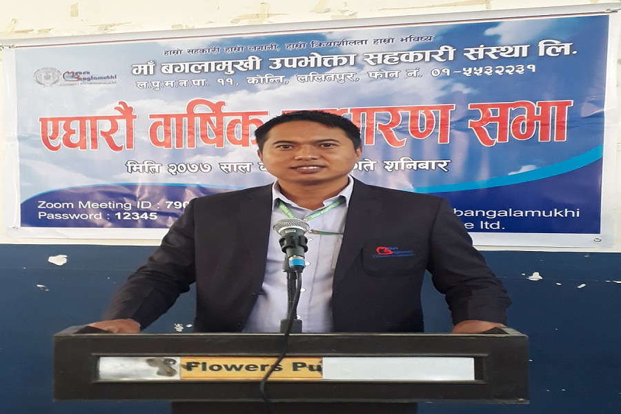 महर्जनकोअध्यक्षता र सचिव सुनिल महर्जनको सञ्चालनमा सम्पन्न भयो । त्यस साधारणसभाले सोही संस्थाका अध्यक्ष अधिवक्ता लक्ष्मण महर्जनले त्यस संस्थाको वार्षिक प्रतिवेदन पेश गर्दै शेयर सदस्यहरुको सहयोग र कर्मचारीहरुको योगदानका कारण स्थापना भएको ११ वर्षको अवधिमा माँ बंगलामुखी उपभोक्ता सहकारी संस्था लि.ले उल्लेख्य प्रगति गर्न सफल भएको छ भन्नुभयो । उहाँले फुटसल तथा जिमखाना लगायत सञ्चालन गरिरहेको यो संस्था मार्ट सञ्चालनको दिशामा अगाडि बढेको बताउनुभयो । सोही सभामा त्यसै संस्थाका कोषाध्यक्ष रुजेन्द्रमान श्रेष्ठले आर्थिक प्रतिवेदन र लेखा सुपरीवेक्षण समिति संयोजक सुवर्ण शाक्यले लेखा सुपरीवेक्षण समितिको प्रतिवेदन पेश गर्नुभयो । साधारणसभाले ती प्रतिवेदनहरु पारित ग-यो । आर्थिक वर्ष २०७६/०७७ मा सो संस्थामा शेयर पूँजी रु.२,५१,०७,९०० , निक्षेप संकलन रु.१२,१४,६३,४९५ , कर्जा लगानी रु,११,१७,८५,७७२ र कुल सम्पति रु,१६,०८,७६,०७२ रहेको त्यस सभाले पारित गरेको प्रतिवेदनमा उल्लेख छ ।