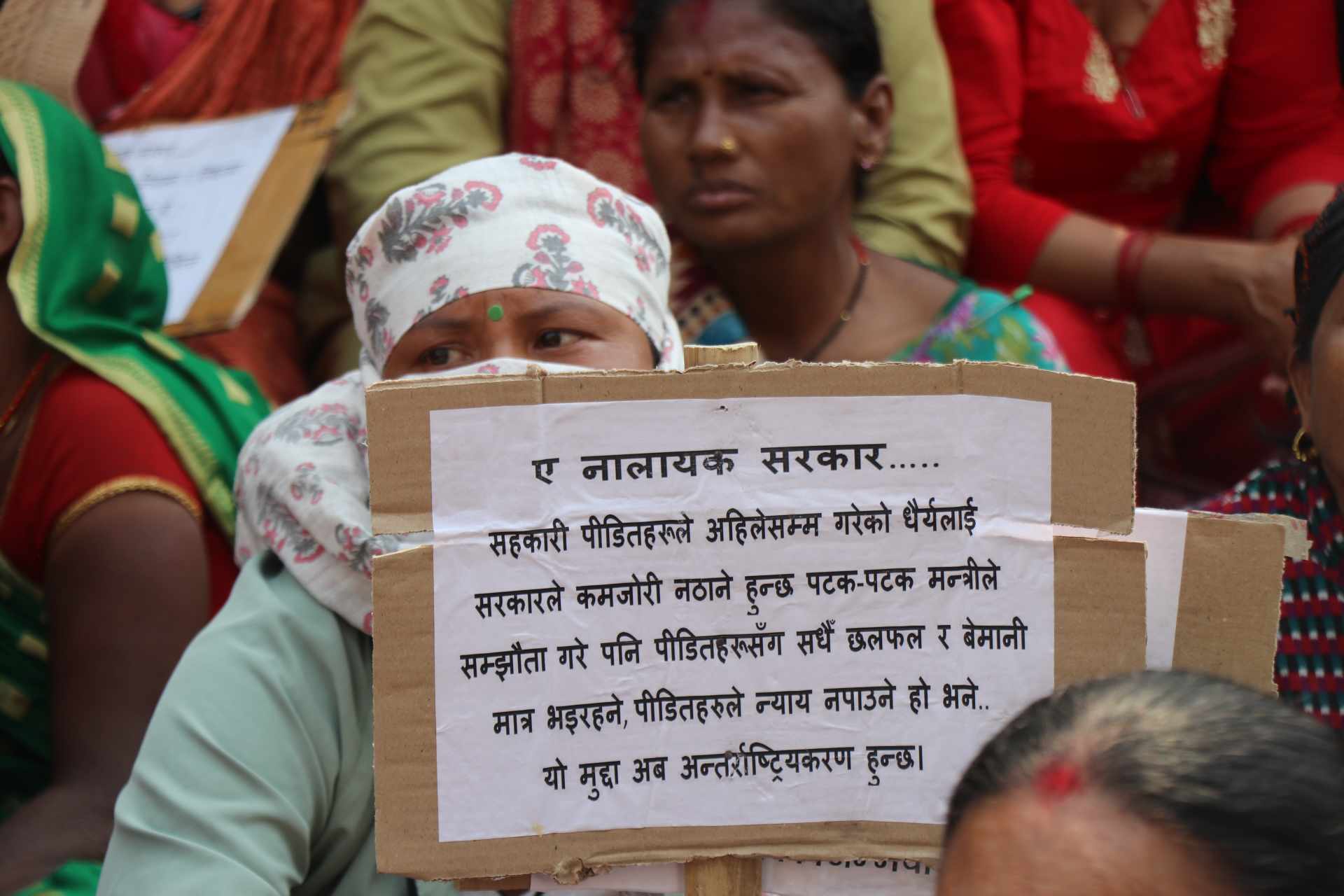 काठमाडौं । सहकारी तथा लघुवित्त पीडितहरूले काठमाडौंमा प्रदर्शन गरेका छन् । विभिन्न सहकारी, लघुवित्त, बैंक तथा मिटरब्याजीबाट ठगिएका बचतकर्ताहरू काठमाडौं आएर प्रदर्शनमा उत्रिएका हुन् ।