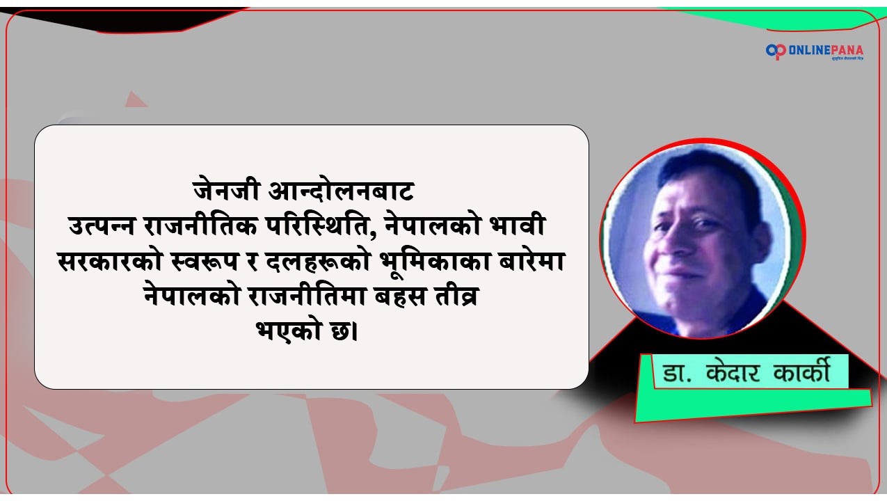 यसैबीच, जेनजी आन्दोलनबाट उत्पन्न राजनीतिक परिस्थिति, नेपालको भावी सरकारको स्वरूप र राजनीतिक दलहरूको भूमिकाका बारेमा नेपालको राजनीतिमा बहस तीव्र भएको छ। सेप्टेम्बर १२ मा प्रधानमन्त्रीको रूपमा शपथ लिएकी सुशीला कार्कीको नेतृत्वमा रहेको अन्तरिम सरकार समयमै चुनाव गराउन प्रतिबद्ध छ, तर यसैबीच, युवा पुस्ता, नेपाली नागरिक समाज र राजनीतिक वृत्तको मनमा धेरै प्रश्नहरू उठेका छन्।