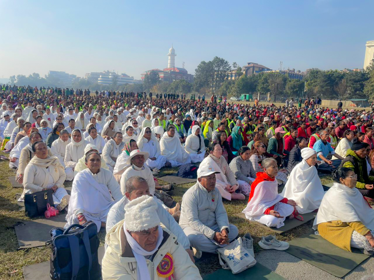 विश्व ध्यान दिवस २०२५ मूल समारोह समितिले टुँडिखेलमा ध्यान दिवसको कार्यक्रम आयोजना गरेको हो । कार्यक्रममा उपस्थित भएका सबैजना ध्यानमा व्यस्त देखिन्छन् ।