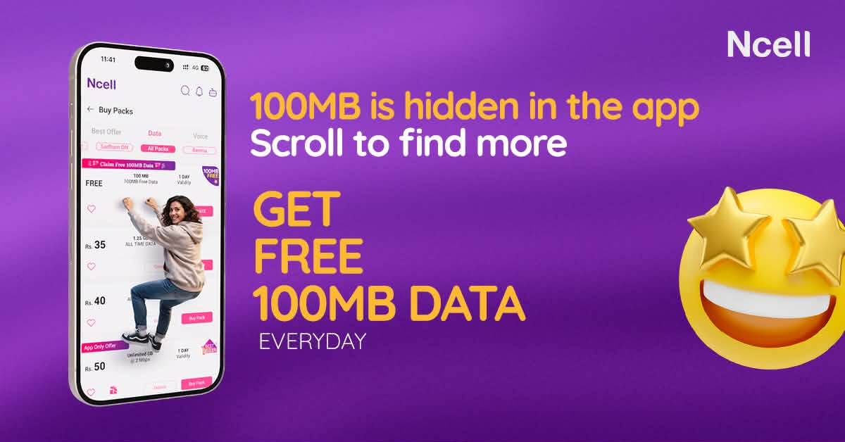 यो निःशुल्क डेटा अफर एनसेलको डिजिटल समावेशीकरण तथा ग्राहक संलग्नता अभिवृद्धि गर्ने योजना अन्तर्गत संचालनमा ल्याईएको हो । दैनिक निःशुल्क डेटा र विभिन्न क्रियाकलापमार्फत ग्राहक अनुभव अभिवृद्धि गर्दै एनसेलले डिजिटल पहुँचलाई अझ आकर्षक, सहभागितामूलक र सबैका लागि सहज बनाउने लक्ष्य राखेको छ ।