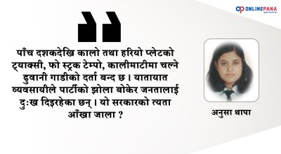 अनलाइनपाना डटकममा प्रकाशित सामग्रीबारे कुनै सूचना, गुनासो, तथा सुझाव भए हामीलाई [email protected] मा लेखी पठाउनुहोला ।