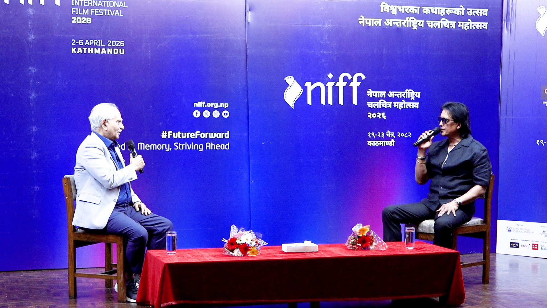 काठमाडौं । नेपाल अन्तर्राष्ट्रिय चलचित्र महोत्सव (निफ)को दोस्रो दिन शुक्रबार बलिउड फिल्म ‘शोले’ का निर्देशक रशेम सिप्पी र महानायक राजेश हमालबीच ‘सिनेमा संवाद : रमेश सिप्पी र राजेश हमालसँग’ शीर्षकको संवाद कार्यक्रम सम्पन्न भएको छ ।