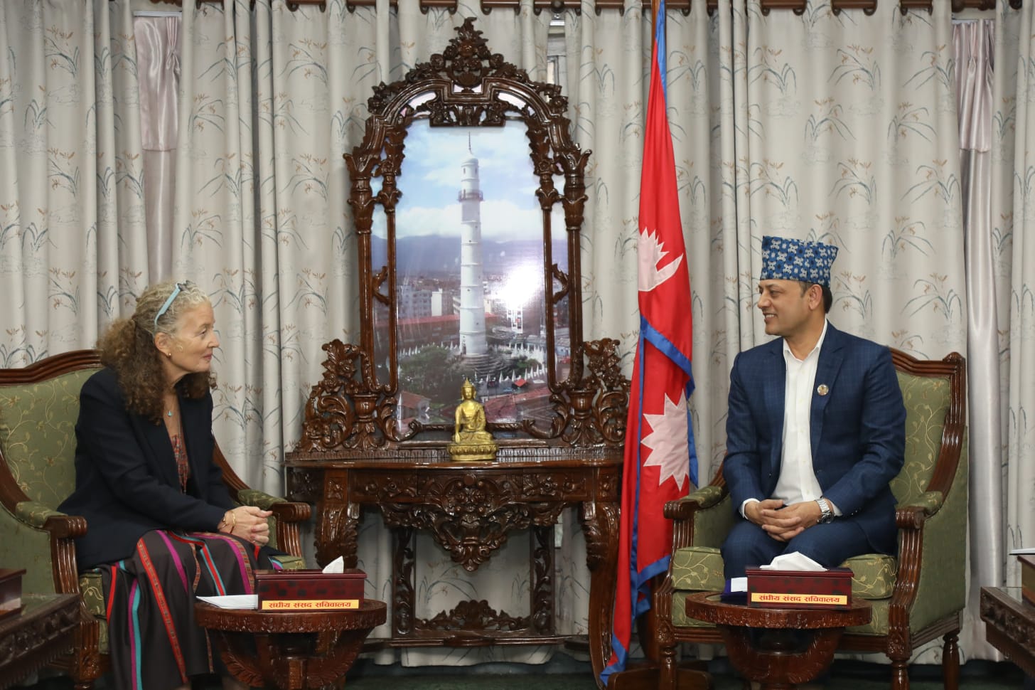 काठमाडौं । सभामुख डोल प्रसाद (डीपी) अर्याल र नेपालका लागि संयुक्त राष्ट्रसंघकी आवासीय संयोजक लीला पिटर्स याहियाले शिष्टाचार भेटवार्ता भएकाे छ । भेटमा नेपाल–संयुक्त राष्ट्रसंघ सहकार्य, युवा सहभागिता, शिक्षा, लैङ्गिक समानता, कूटनीति तथा जलवायु परिवर्तनका समसामयिक विषयमा विस्तृत छलफल भएको हाे ।
